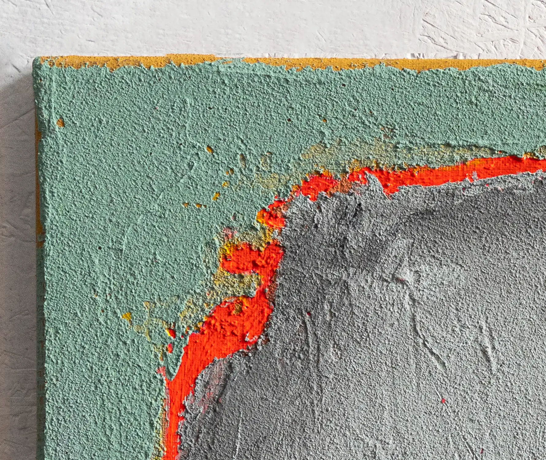 Dieses Gemälde wurde auf einer mit Gesso und Strukturpaste vorbereiteten Leinwand ausgeführt. Diese Grundlage bereichert die Oberfläche, verleiht ihr eine taktile Qualität und lässt die Farben anders schwingen, als wenn direkt auf die Leinwand gemalt würde.