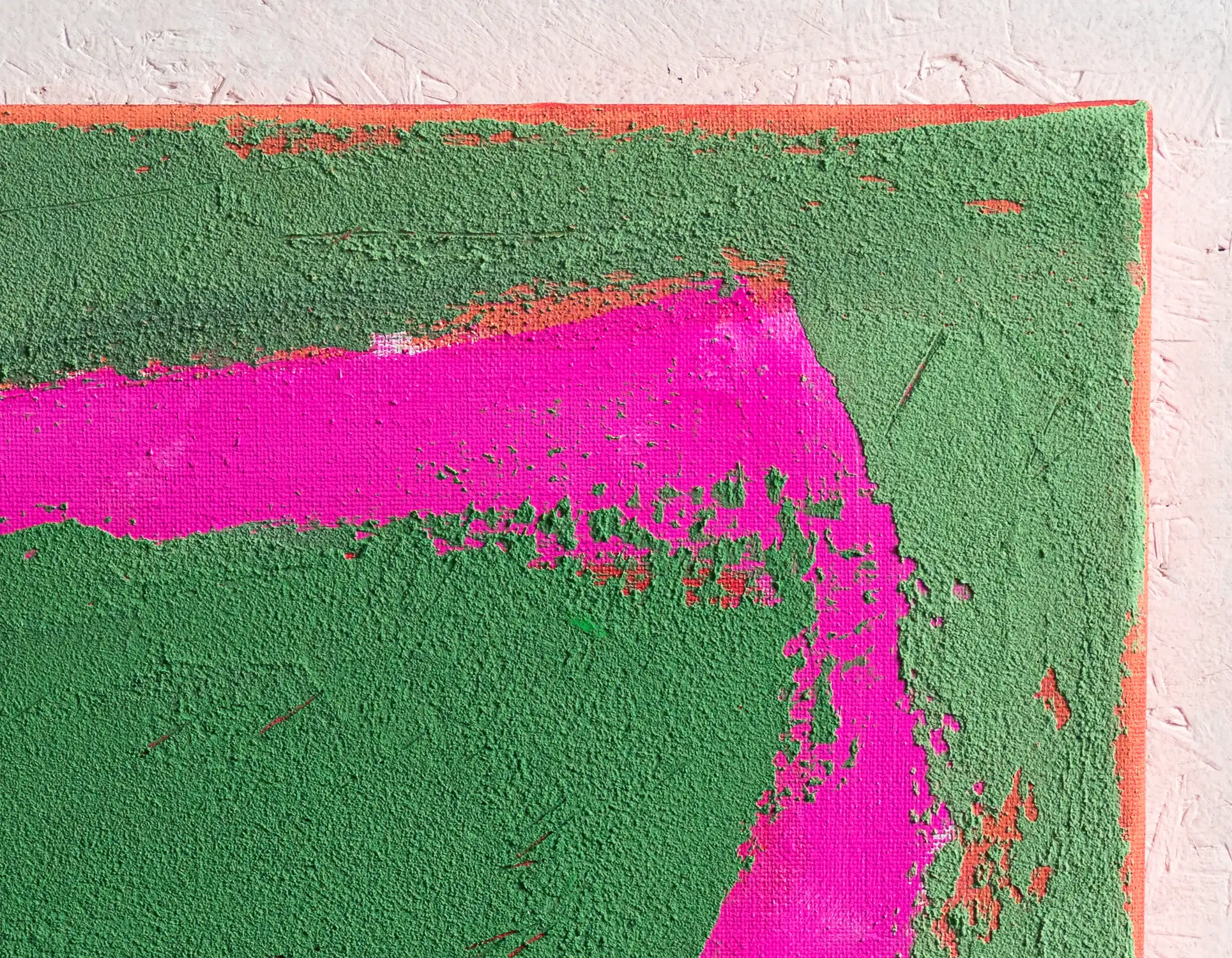 Dieses Gemälde wurde auf einer mit Gesso und Strukturpaste vorbereiteten Leinwand ausgeführt. Diese Grundlage bereichert die Oberfläche, verleiht ihr eine taktile Qualität und lässt die Farben anders schwingen, als wenn direkt auf die Leinwand gemalt würde.