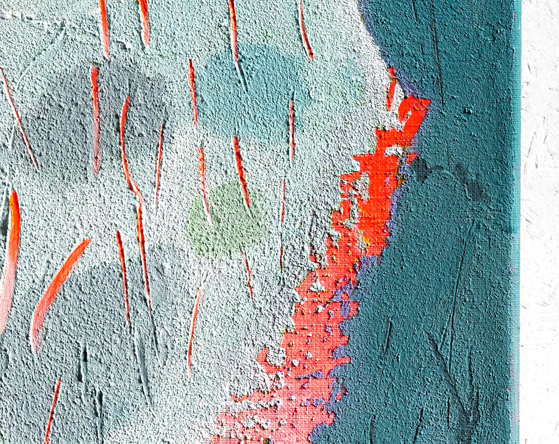 Dieses Gemälde wurde auf einer mit Gesso und Strukturpaste vorbereiteten Leinwand ausgeführt. Diese Grundlage bereichert die Oberfläche, verleiht ihr eine taktile Qualität und lässt die Farben anders schwingen, als wenn direkt auf die Leinwand gemalt würde.